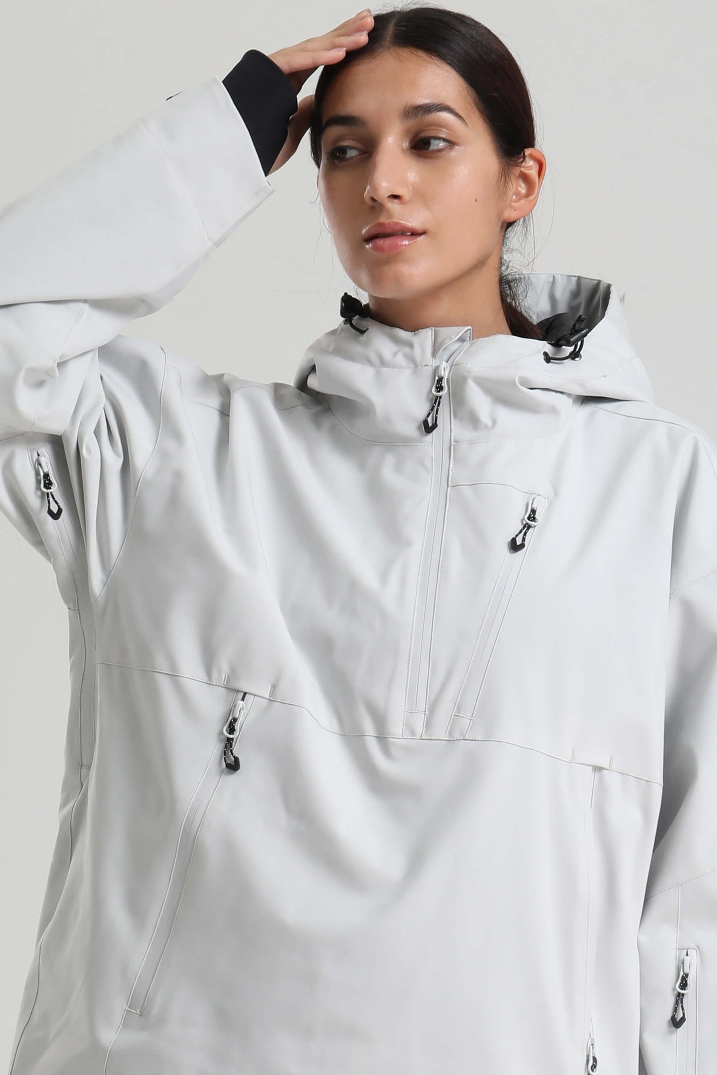 Women's Light Grey Minimalist Half-Zip Waterproof Insulated Snow Anorak